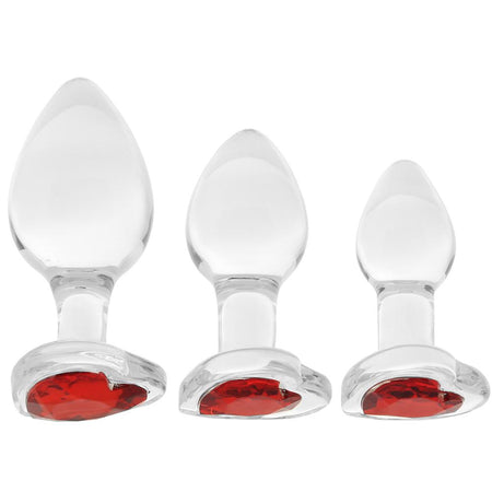 Booty Sparks Red Heart Gem Glass Anal Plug Set